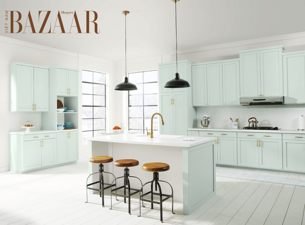 Các mã màu cho bạn từ hãng sơn Behr bao gồm xanh biển sâu Ocean Abyss, xanh cobalt – cũng từng là màu của năm 2020, các tông lam nhạt, beige và xám.